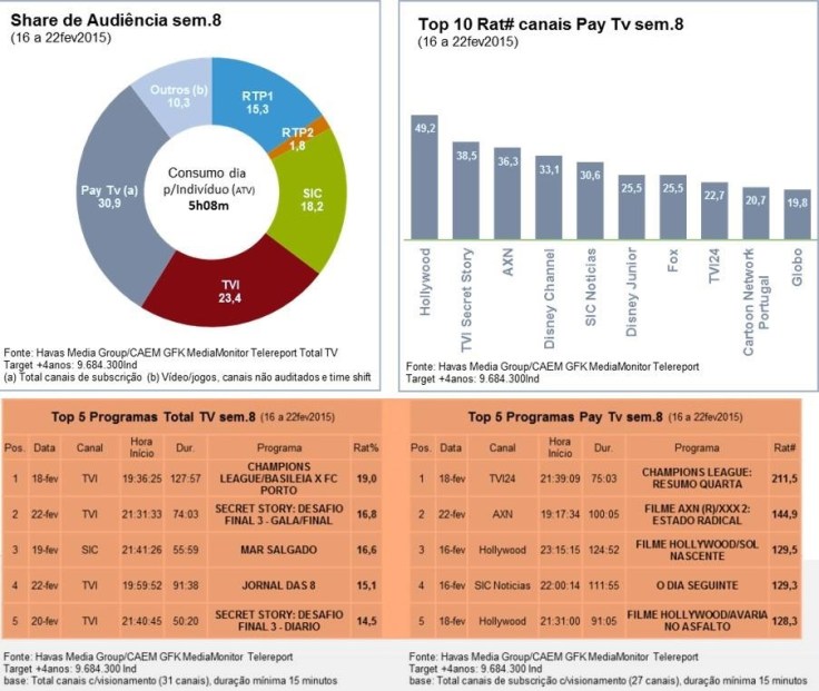 AUDIÊNCIAS TV / SEMANA – 16 A 22 FEV. 2015 Semana de 16 a 22 de Fevereiro Classifique isto: Relacionado Deixa o teu comentário Cancelar resposta Δ