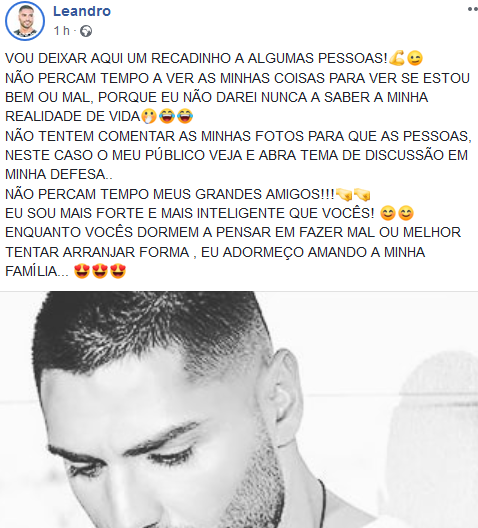 Leandro: cantor deixa recado a quem lhe quer mal Cantor deixa recado É através das redes sociais que o cantor romântico deixa um recado a quem lhe quer mal: Classifique isto: Relacionado Deixa o teu comentário Cancelar resposta Δ