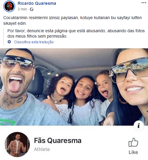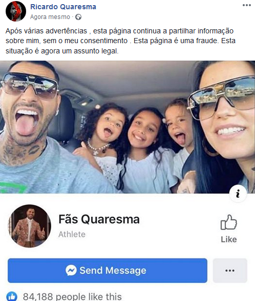 O jogador português já tinha avisado ontem e, agora mesmo, deixou claro que irá agir legalmente contra a página que usa o seu nome e a sua imagem sem autorização.