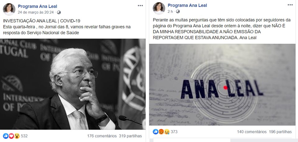 Ana Leal já se tinha queixado que António Costa havia pedido a sua demissão da TVI e agora ficamos a saber que a reportagem sobre as graves falhas que «infectam» o SNS foi cancelada, supostamente pelo director de Informação da emissora (só pode ter sido) que é um reconhecido camarada da Esquerda fofinha que desgoverna o país…