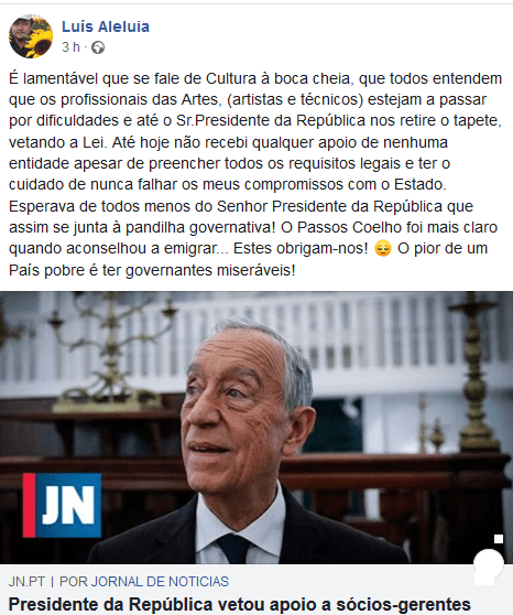 O consagrado actor está revoltado com uma decisão do Presidente da República, após este ter vetado o apoio a sócios-gerentes durante a Covid-19.