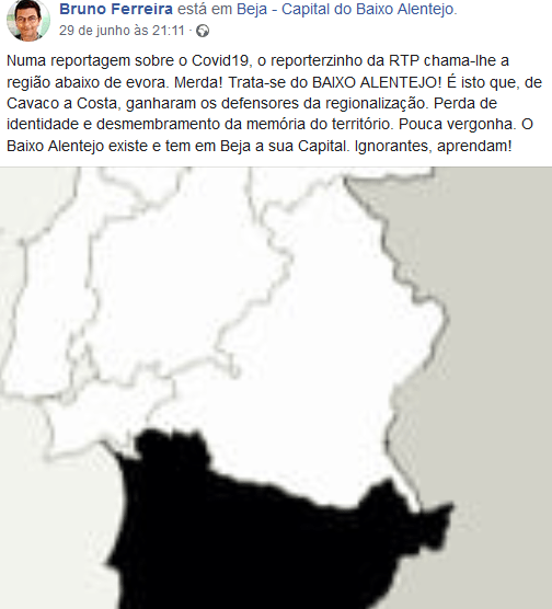 Na reportagem, o jornalista que assinou a reportagem da estação pública, a dado momento fala divide o Alentejo em duas partes “acima de Évora e abaixo de Évora”. E foi isto que o humorista não gostou de ouvir, principalmente a frase “abaixo de Évora”, uma vez que é um ferrenho defensor da cidade de Beja. Perante isto, Bruno Ferreira não poupou o profissional da RTP: