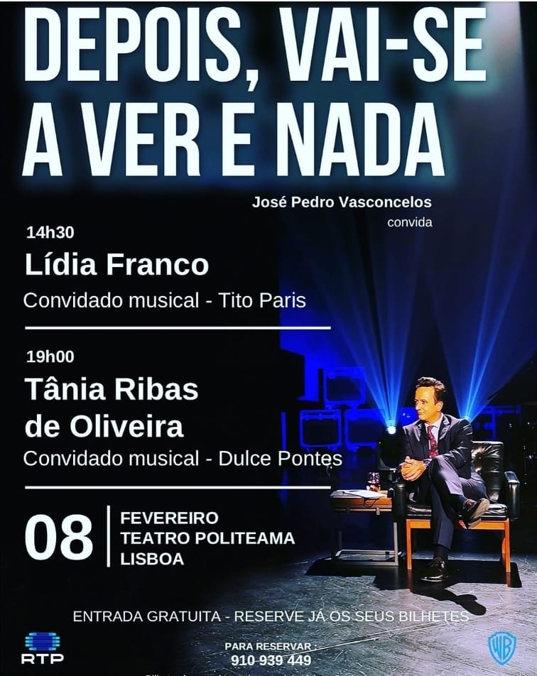 No dia 8 de fevereiro, o popular apresentador da RTP irá gravar dois programas: o primeiro com a actriz Lídia Franco que terá o cantor Tito Paris como convidado musical, e o segundo terá Tânia Ribas de Oliveira como convidada principal e Dulce Pontes no momento musical.