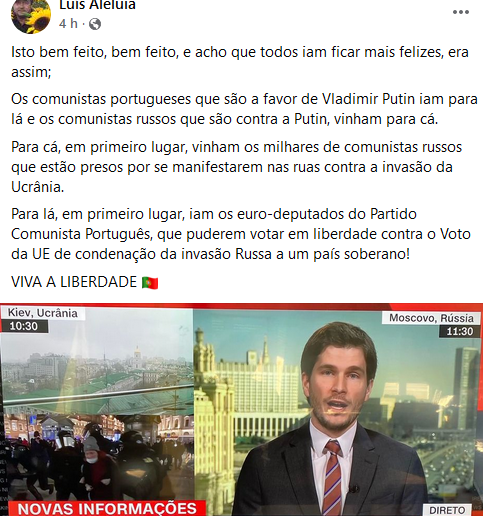 Os comunistas portugueses que são a favor de Vladimir Putin iam para lá e os comunistas russos que são contra a Putin, vinham para cá.