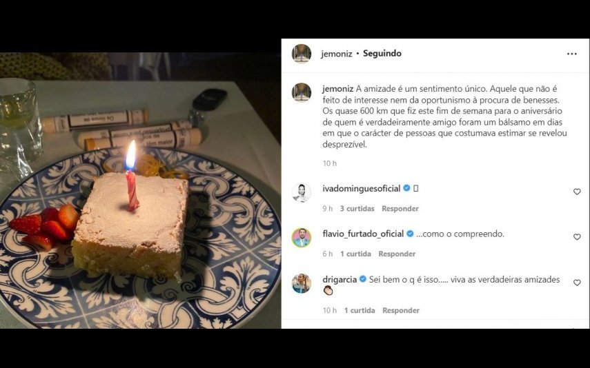 “A amizade é um sentimento único. Aquele que não é feito de interesse nem da oportunismo à procura de benesses. Os quase 600 km que fiz este fim de semana para o aniversário de quem é verdadeiramente amigo foram um bálsamo em dias em que o carácter de pessoas que costumava estimar se revelou desprezível”, escreveu.